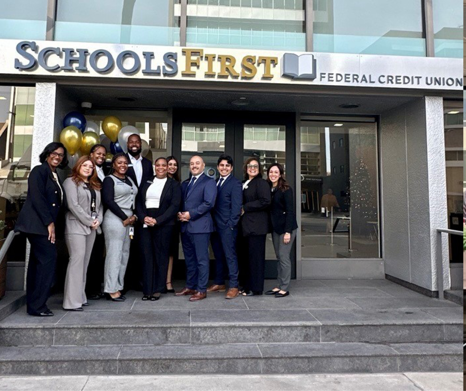 On December 22, SchoolsFirst Federal Credit Union opened a new branch in Los Angeles, extending its footprint to 72 branches in California. The branch team celebrated by welcoming their first Member, Brett. Located in the heart of the city, the Credit Union is making it more convenient for Members to do business within the communities where they live and work.