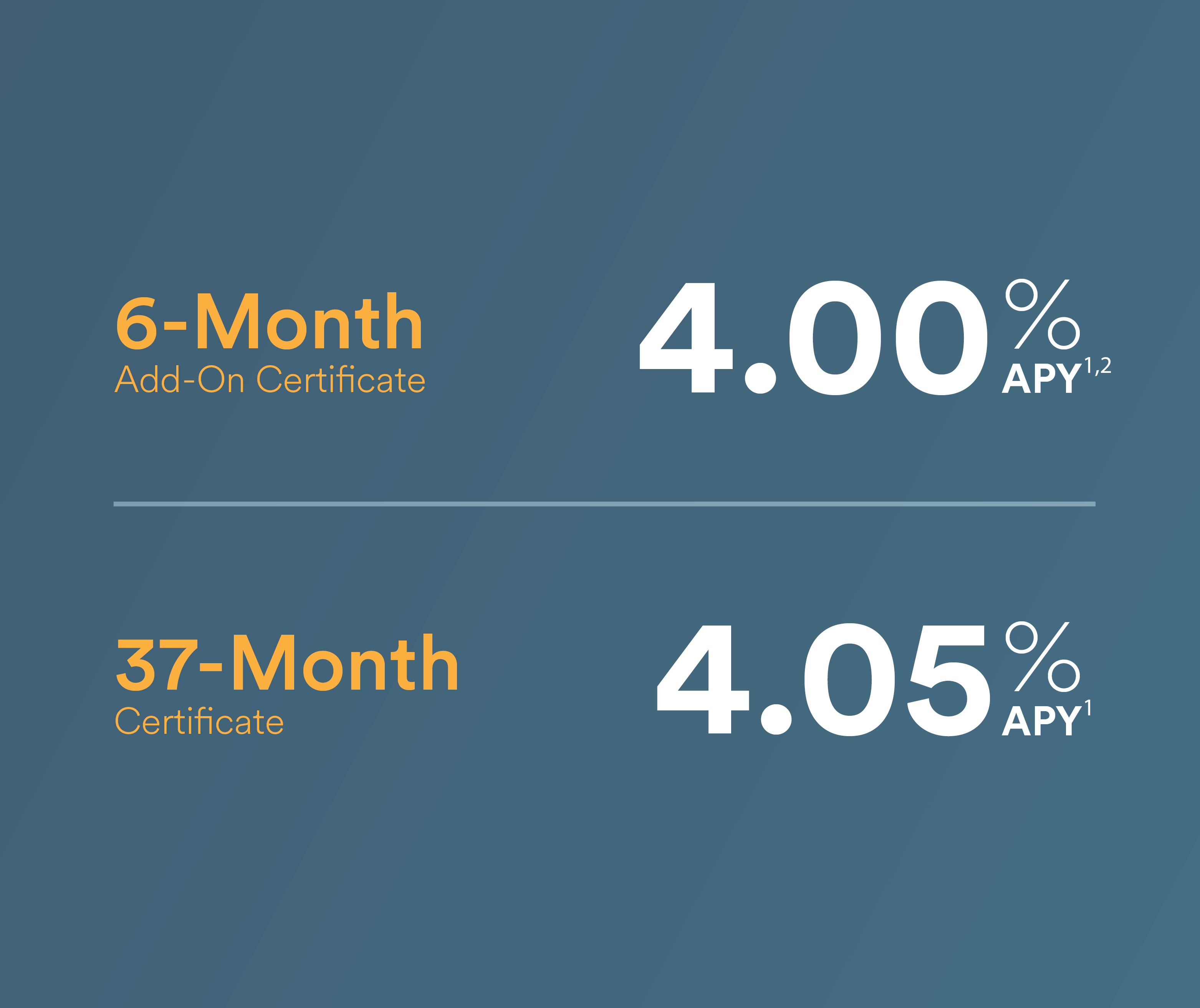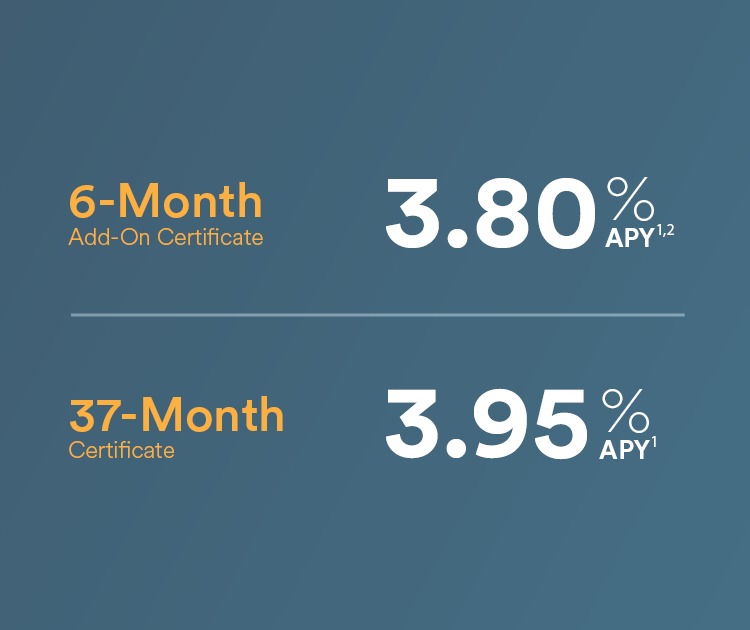 No matter your financial goals, we can help get you there faster with a promotional share certificate. Enjoy more savings and flexibility with two rates and terms to choose from — because you can never have too much of a good thing.